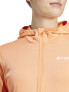 Different types of trails call for different layers. Our lightest mid layer, made with over 90% recycled polyester, is designed for complete comfort when heading out on the cooler days. The special waffle grid looped backside structure provides thermal comfort and helps wick away sweat from skin. The longer backside makes it backpack-compatible without riding up and the close fits sits under other layers without impacting your movement Women's jacket.