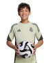 Bring your Real Madrid passion to the training ground. Part of the adidas kit the players wear before tackling league games, this juniors' football jersey delivers lightning play courtesy of its smooth fabric and moisture-managing AEROREADY. Adding inspiration to every move, a heat-applied team badge takes pride-of-place on the chest.