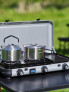 Aragaz cu tehnologie Flame Guard™ - veti obtine o gatire rapida in conditii de vant. 1 litru de apa ajunge la 90°C, timp de fierbere, cu un vant de 3 m/s, in mai putin de 12 minute. Noua tehnologie Flame Guard™ este conceputa pentru o protectie optima a flacarii si un consum mai mic de gaz. Camping Kitchen™ 2 Multi-Cook combina gatitul si gratarul intr-unul singur, cu trei arzatoare independente care permit controlul individual al caldurii. Fierbeti, rumeniti si prajiti in acelasi timp pentru a obtine alimente calde si servite la timp.