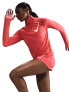 Bluza de alergare pentru femei cu tehnologie Dri-FIT care evapora umezeala si semi-fermoare pentru ventilatie suplimentara atunci cand este necesar. Manecile cu orificii pentru degetul mare ofera protectie suplimentara pe vreme mai rece.