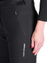 Pantaloni de schi pentru femei fabricati din material softshell elastic in trei straturi cu o coloana de apa si parametri de respirabilitate de 10.000 mm H₂O / 5.000 g/m²/24 h, datorita carora rezista la umiditate si vant moderat, mentinand in acelasi timp o buna respirabilitate. Au doua buzunare frontale cu fermoar si un buzunar spate cu fermoar. Tesatura elastica in 4 directii si genunchii conturati ofera libertate de miscare, in timp ce fermoarele din partea de jos a picioarelor permit imbracarea si scoaterea mai usoara.