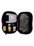 • Bucle elastice pentru fixarea fiolelor, tifonului etc., astfel incat acestea sa nu fie libere in trusa de prim ajutor si un buzunar transparent voluminos cu un capac